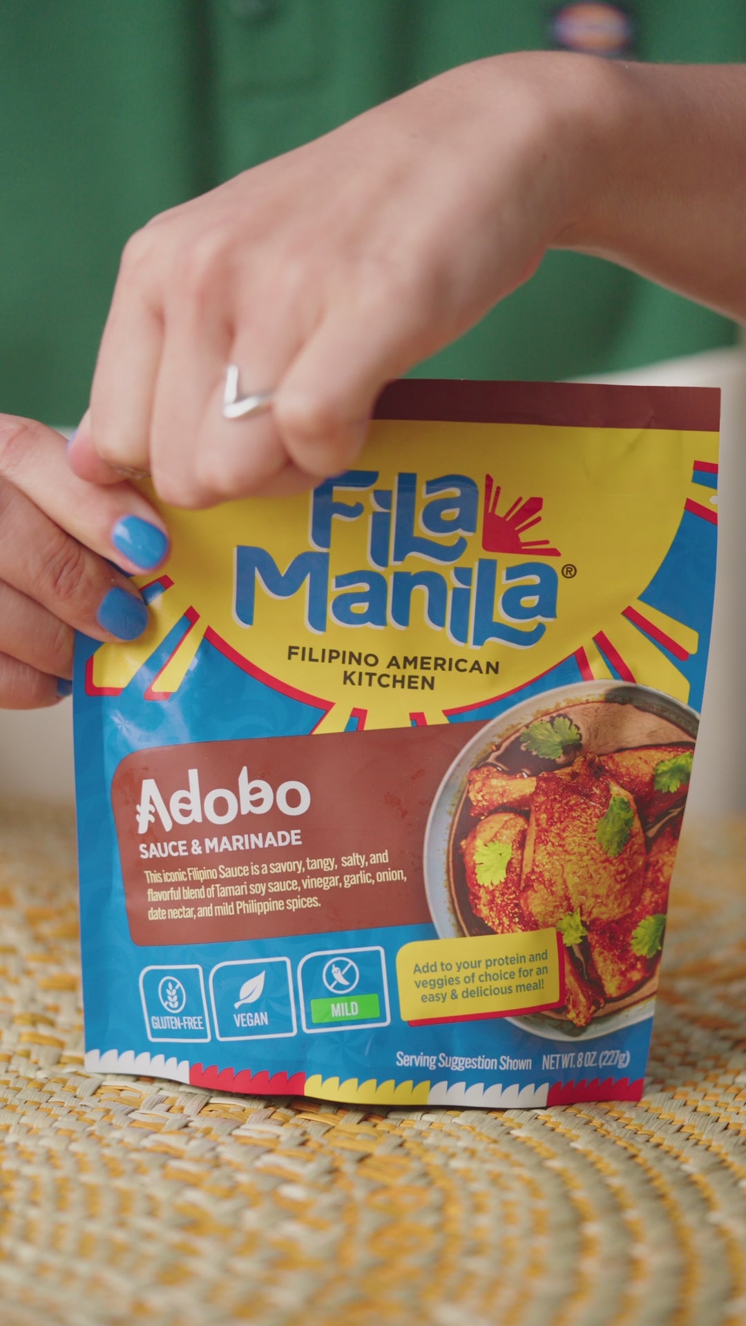 Meet Adobo (ah·doe·bo), wheat-Free Tamari, vinegar, garlic, and mild Filipino spices create a mouth-watering combination of umami, salty, & tangy flavors.